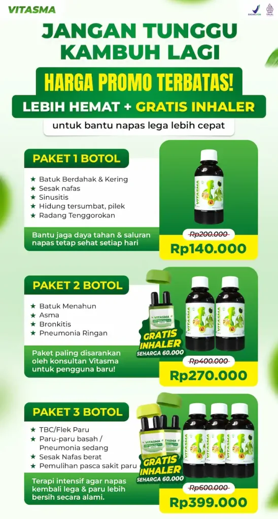 Jangan tunggu sampai KOMPLIKASI , atasi hanya dengan 2 botol Madu VITASMA. Perlu diingat Asma, TBC & Bronkitis, Pneumonia, ISPA jika dibiarkan dapat Menyebabkan Kematian